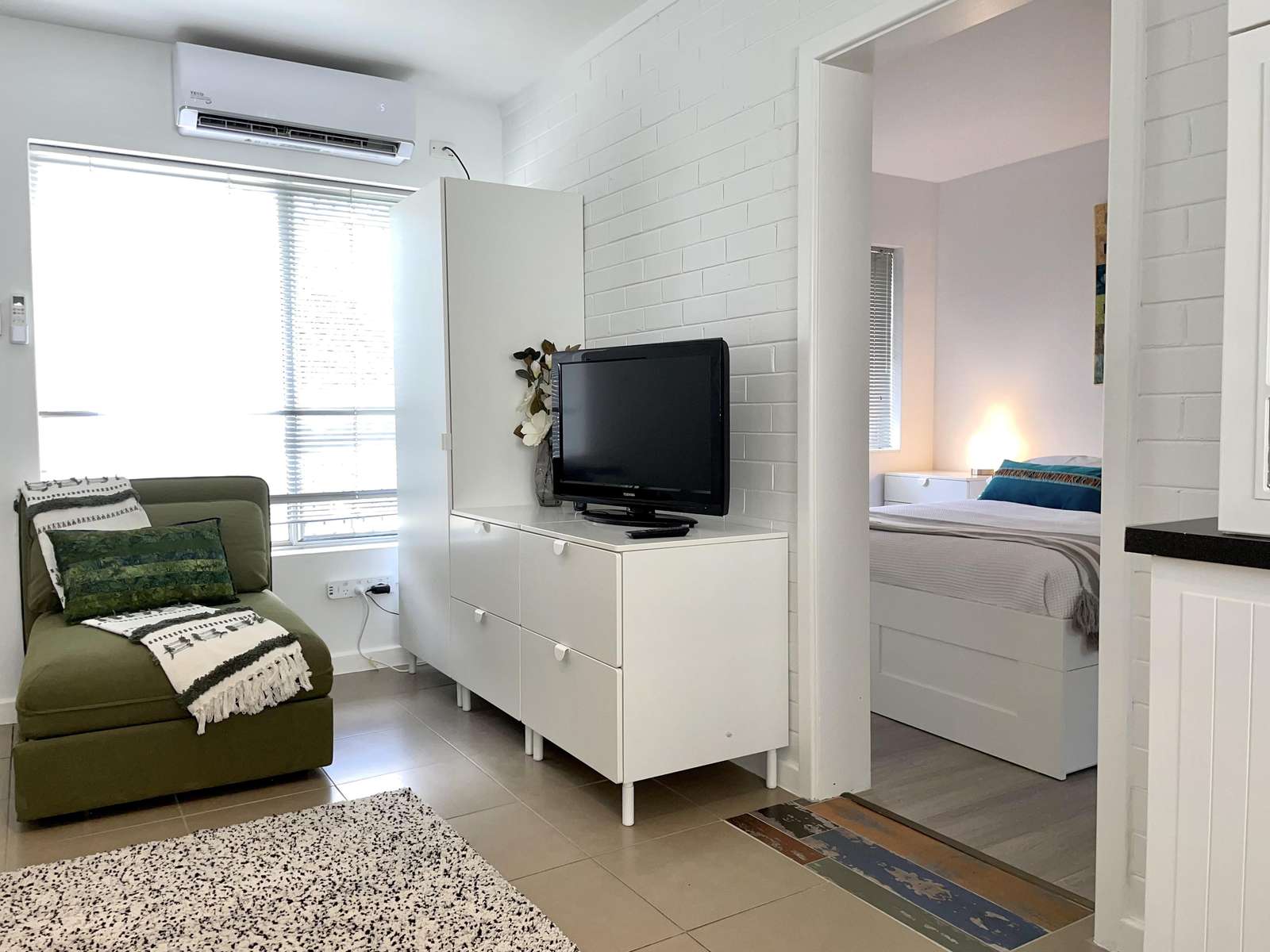 This freshly renovated super cute Subiaco holiday rental features an open plan kitchen dining room, with the master bedroom off the lounge and has an ensuite bathroom.